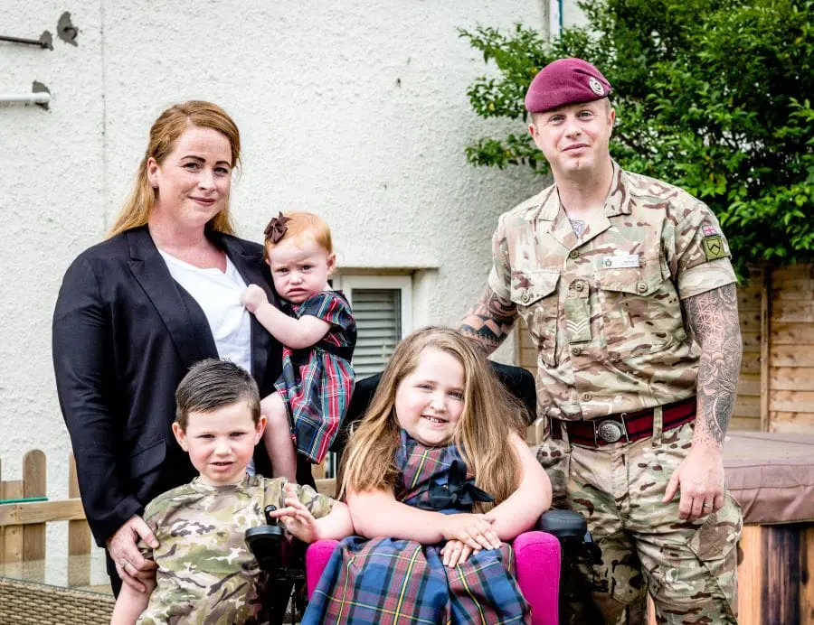 Sergeant James Nugent’s daughter, Elsie, was diagnosed with spinal muscular atrophy in the early months of her life, which requires her to use a wheelchair all the time. As she grew, James and his wife struggled to lift Elsie and suffered back injuries. We provided £12,000 to fund an extension to their house, mobility equipment and a ramp, so that Elsie has a safe and comfortable living space and the family can live together happily.
